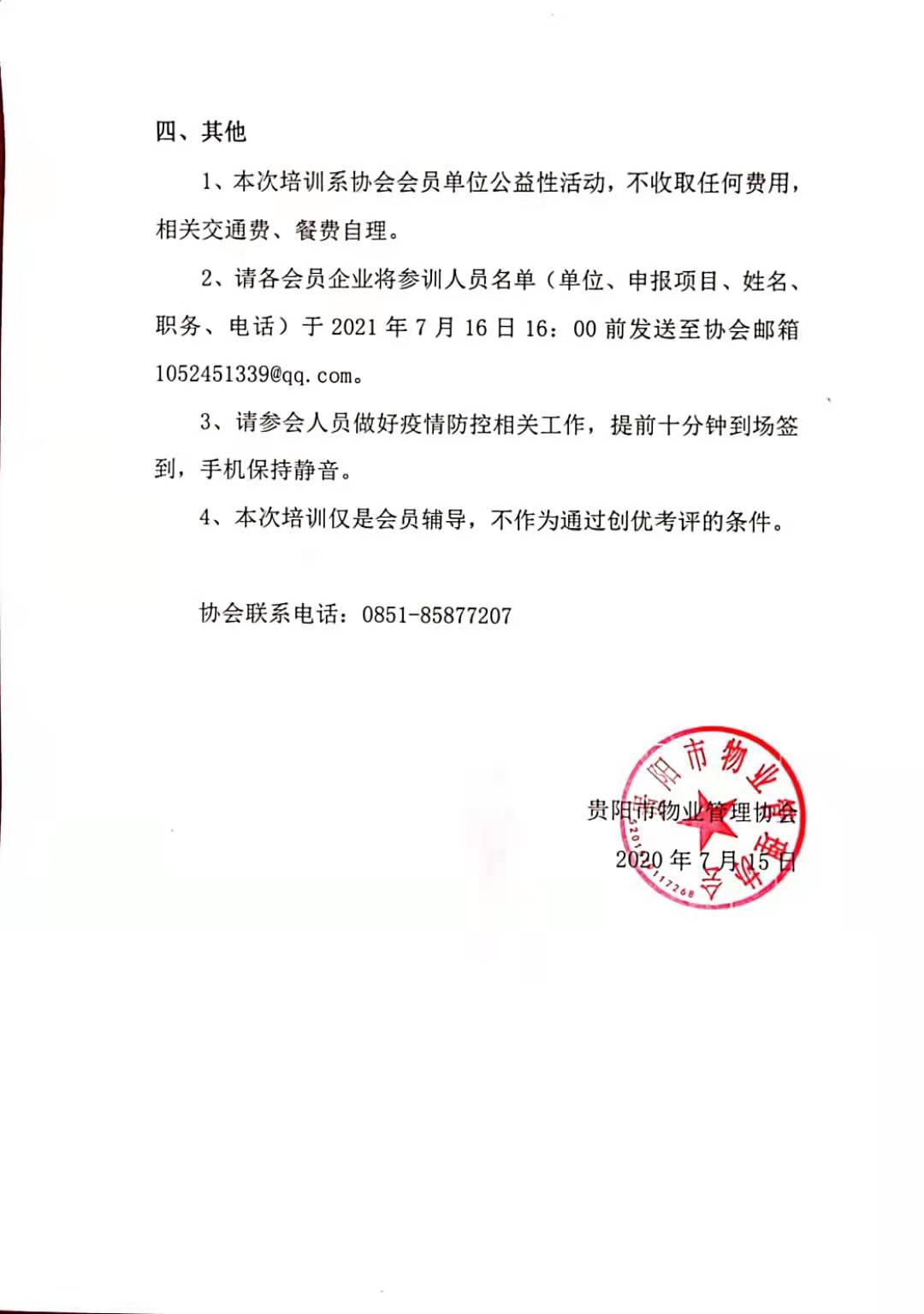 市物协字第[2021]12号 关于组织开展创优、创星达标培训的通知 会员服务 通知公告 会员展示 会员名录 会员动态 关于组织开展创优、创星达标培训的通知 发布时间:2021-07-16 发布单位:贵阳市物业管理协会 阅读量: 0 次 附件:市物协字第[2021]12号 关于组织开展创优、创星达标培训的通知 Posted in 通知公告.